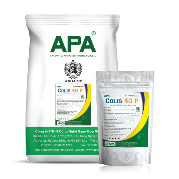– Poultry: 0.2 – 0.3 g APA COLIS 40 P/ liter of drinking water.