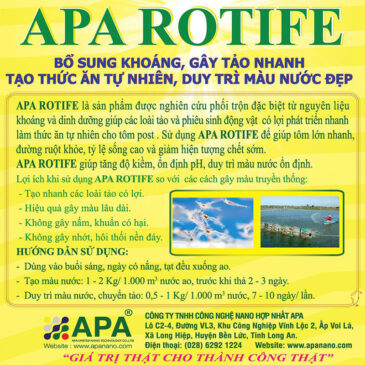 Phòng Kỹ Thuật Thủy Sản APA chia sẻ đến bà con sản phẩm bổ sung khoáng, gây tảo nhanh cho ao tôm, tạo thức ăn tự nhiên cho tôm, duy trì màu nước đẹp. APA ROTIFE là sản phẩm được … Read More