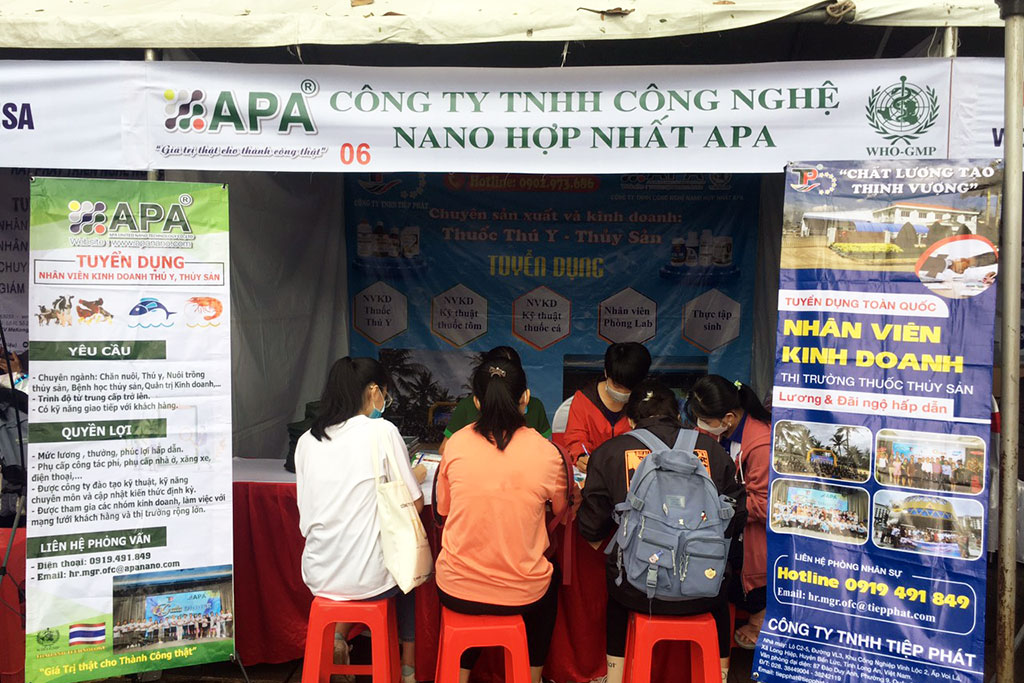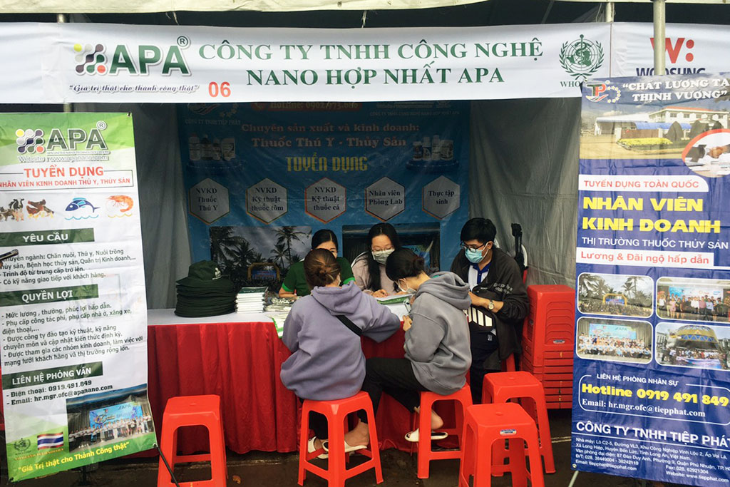 Ngay sau khi gian hàng APA được dựng lên đã thu hút được đông đảo các bạn sinh viên Khoa Thủy sản, Khoa Chăn nuôi, Khoa Thú y,… đến lắng nghe tư vấn và chia sẻ những định hướng nghề nghiệp, cũng như để lại thông tin với hi vọng sau khi tốt nghiệp sẽ đến APA ứng tuyển.