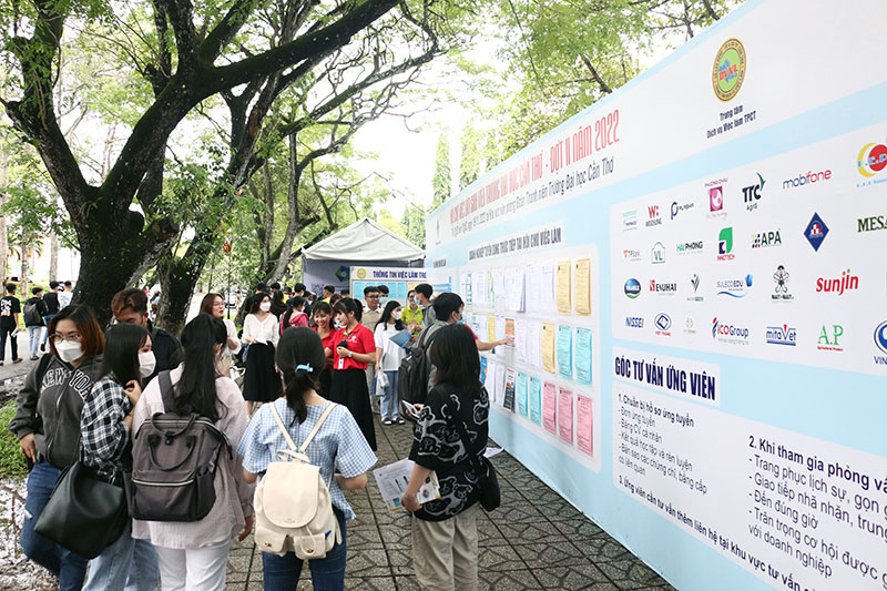 Với mong muốn cung cấp thông tin bổ ích và thiết thực, tạo điều kiện để sinh viên tìm kiếm cơ hội phát triển nghề nghiệp phù hợp với năng lực, chuyên ngành đào tạo, sáng ngày 19/11/2022, Trường Đại học Cần Thơ tổ chức Ngày hội việc làm sinh viên đợt 2 năm 2022 với 60 doanh nghiệp tham gia các gian hàng tuyển dụng và gần 8.000 lượt sinh viên tham dự.